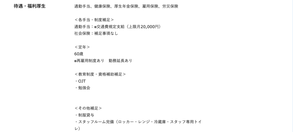 また、福利厚生についても確認が必要です。社会保険(健康保険・厚生年金・雇用保険・労災保険)の完備はもちろん、通勤手当の上限額、OJTや勉強会などの教育体制も待遇の一部として評価すべきポイントです。